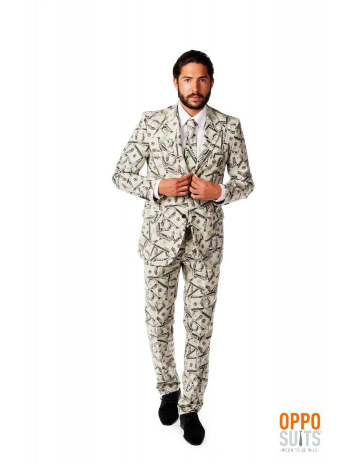 Geld maakt niet gelukkig, maar Cashanova wel. Terwijl wisselkoersen crashen, beurzen rood kleuren en banken omvallen, blijf jij fier overeind. Met dit onbetaalbare pak laat je zien wat je echt waard bent. It’s all about the Benjamins, je weet toch.