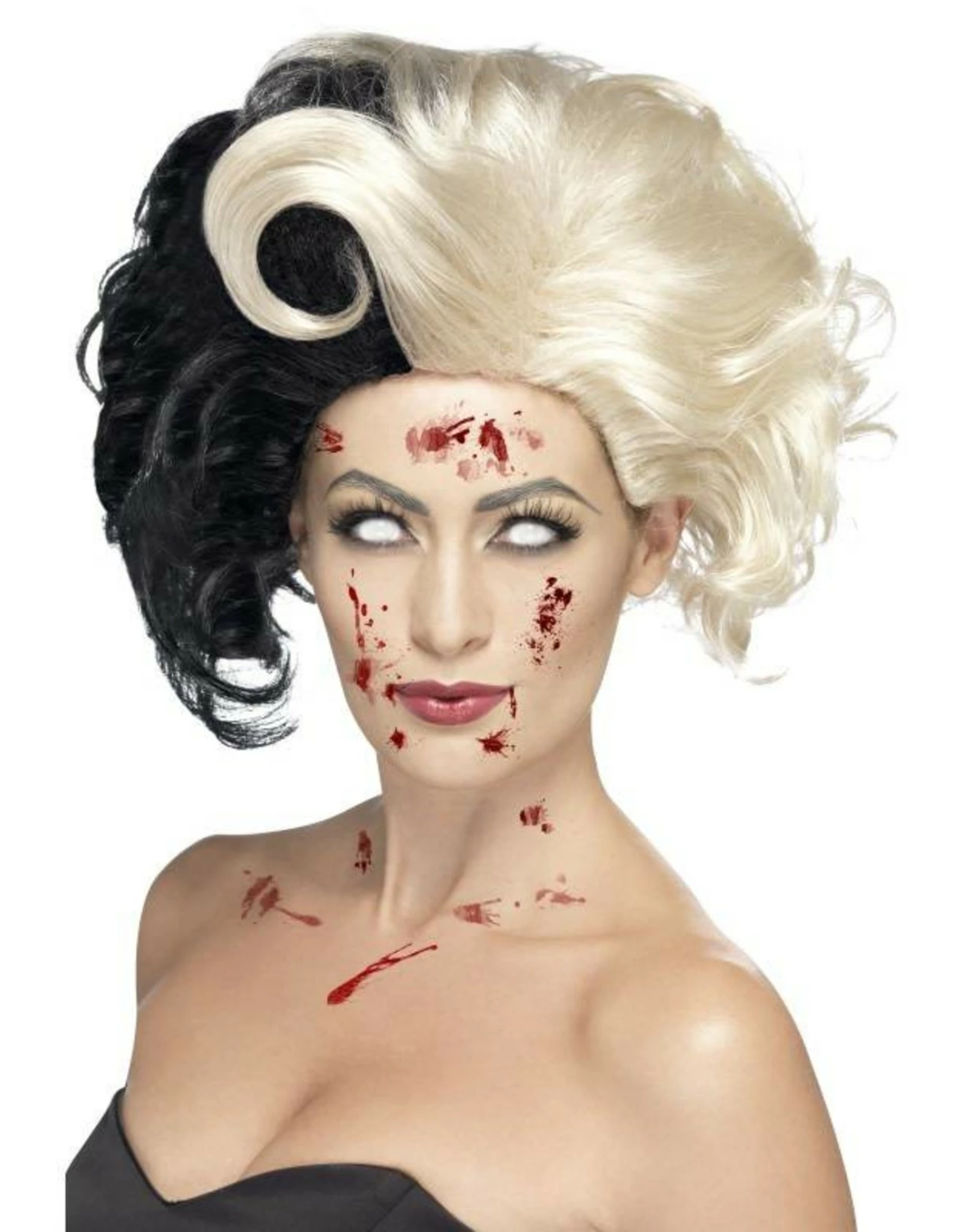 Deluxe Evil Madame Pruik, Zwart Met Witte Lokken.