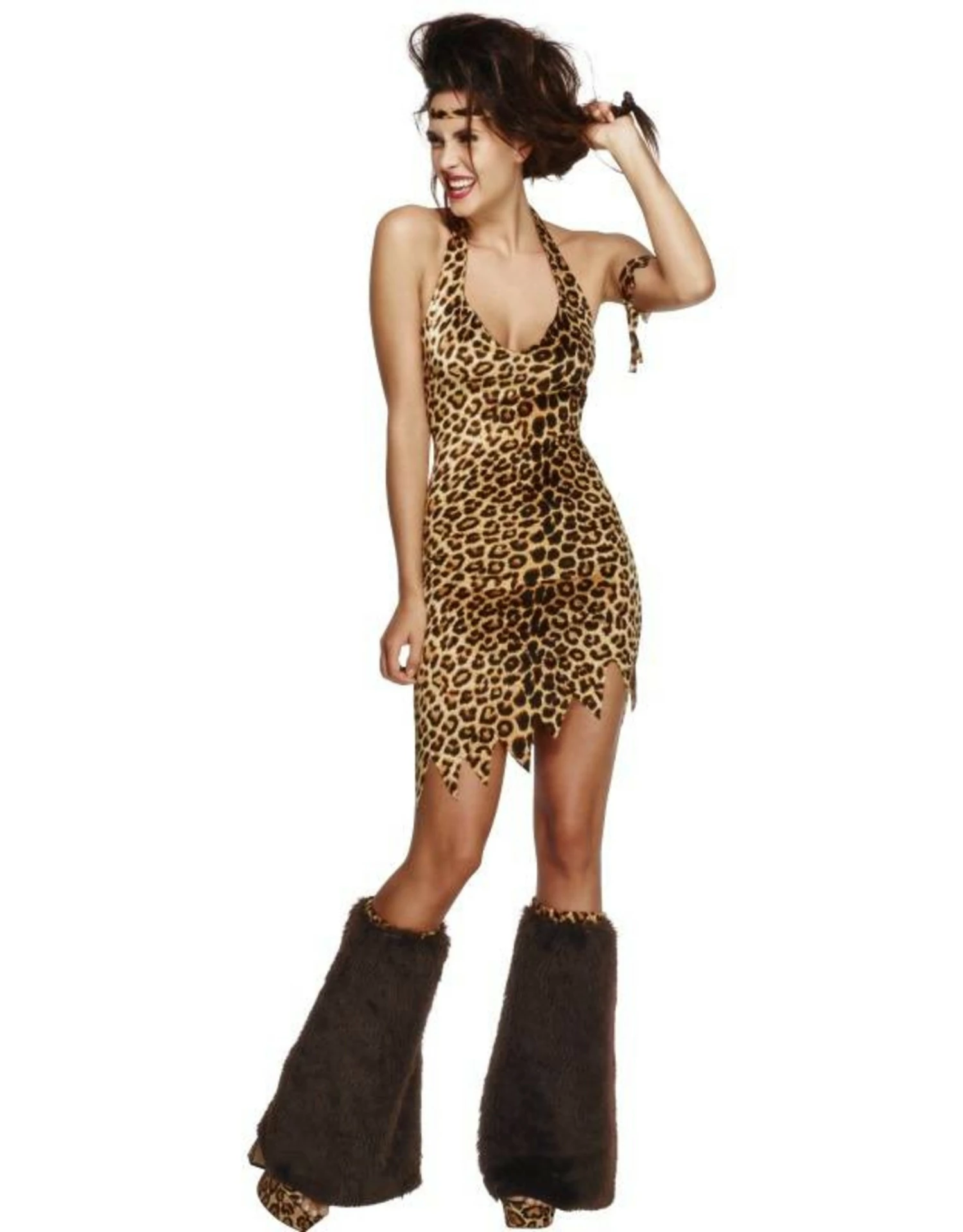 Dit kostuum bestaat uit een jurk, haarband, armband en beenkappen.