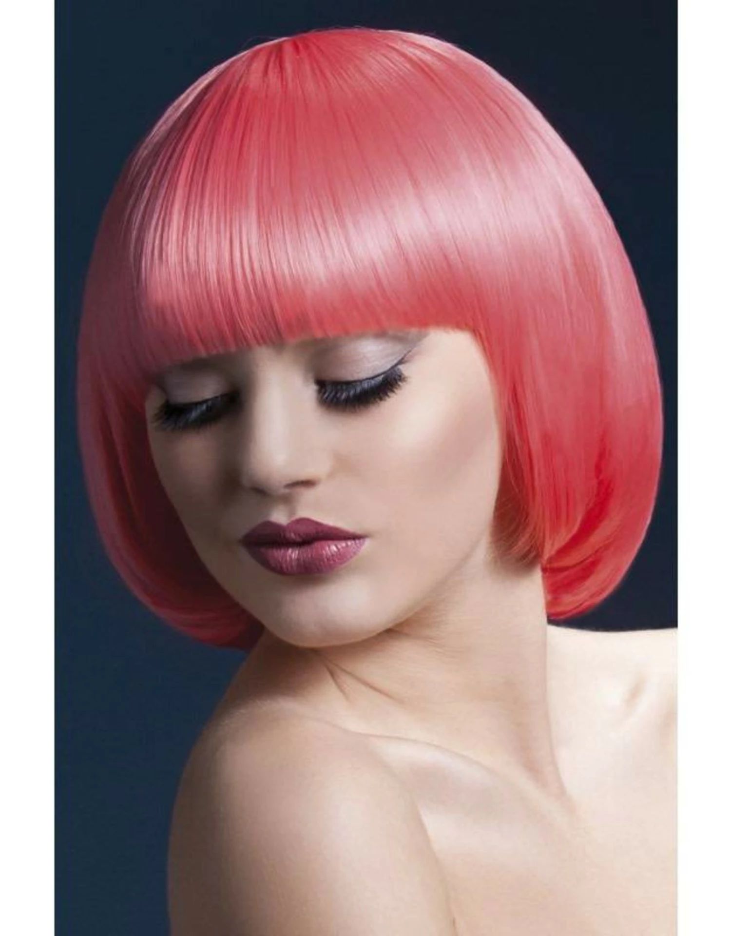 Fever Mia Pruik, Pastel Koraal, Korte bob met pony, 25 cm lang