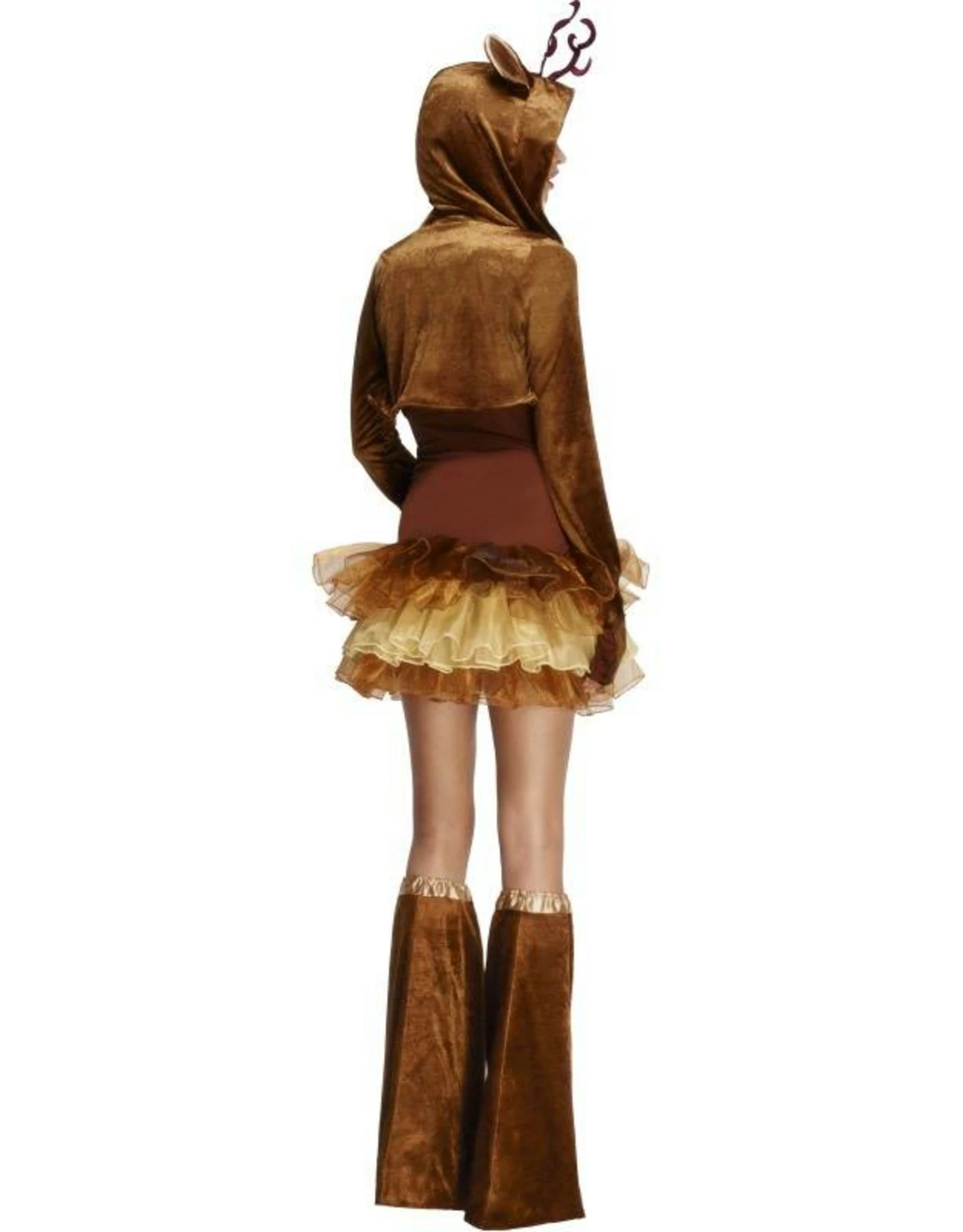 Dit kostuum bestaat uit een jurk met tutu, jasje met capuchon en gewei, laarskappen.