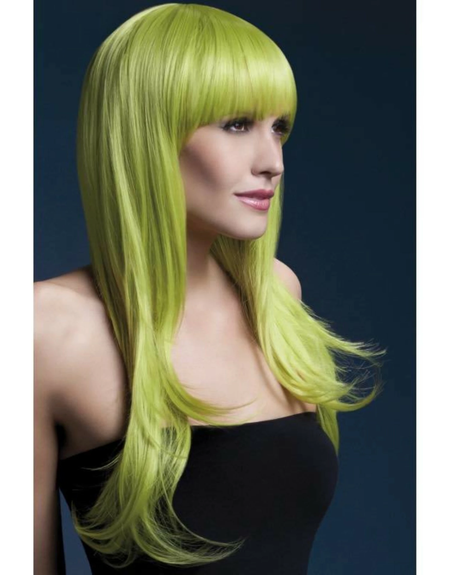Lange pastel groene Fever Sienna pruik met pony – 66 cm