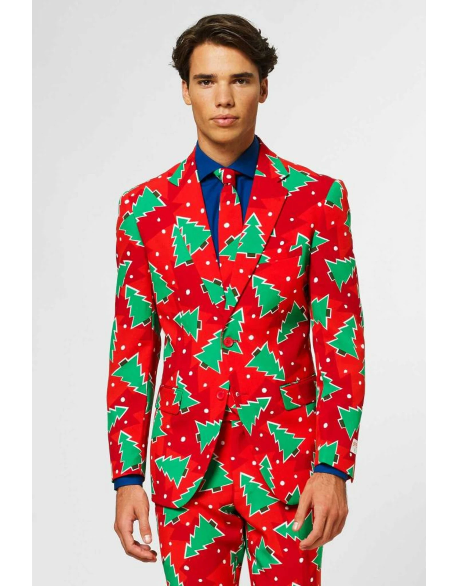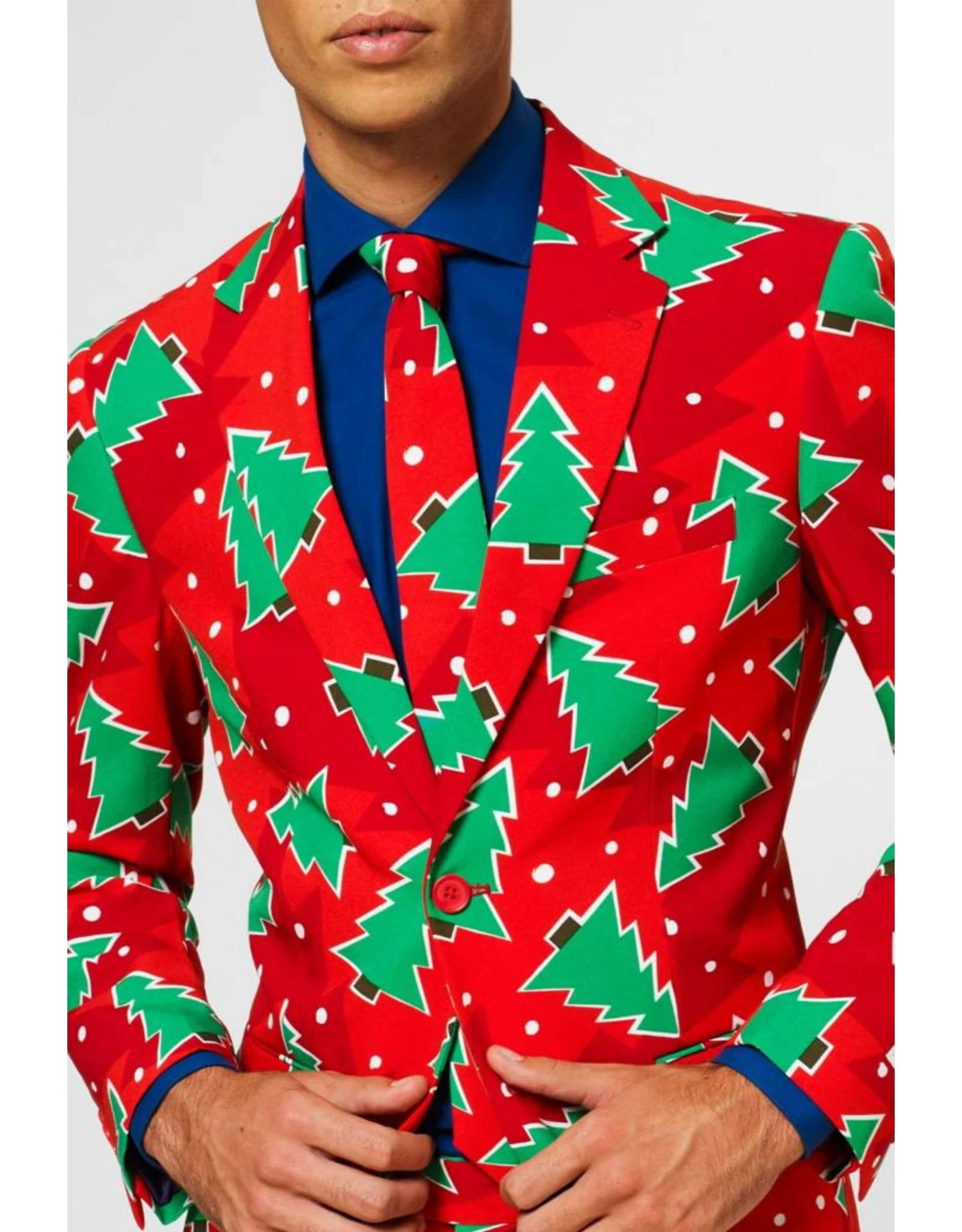 Heb je het gevoel dat je versierd wordt door deze kerstboom? Begrijpelijk, want dit pak is de ultieme outfit voor het kerstseizoen. Meestal is de kerstboom het middelpunt van het huis tijdens de feestdagen, maar deze keer kan jij de feestelijke eye-catcher zijn met dit stijlvolle kerstbomenpak.