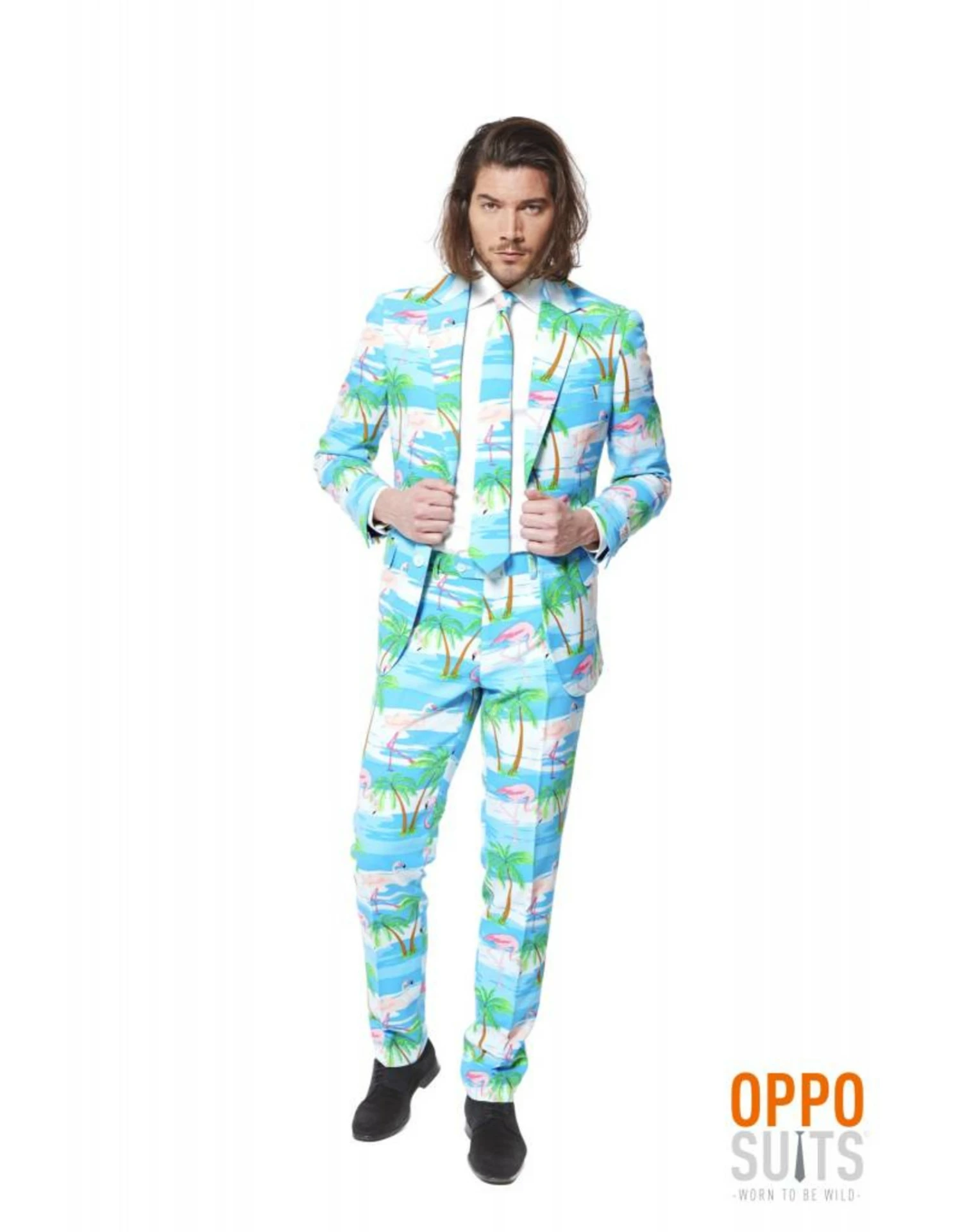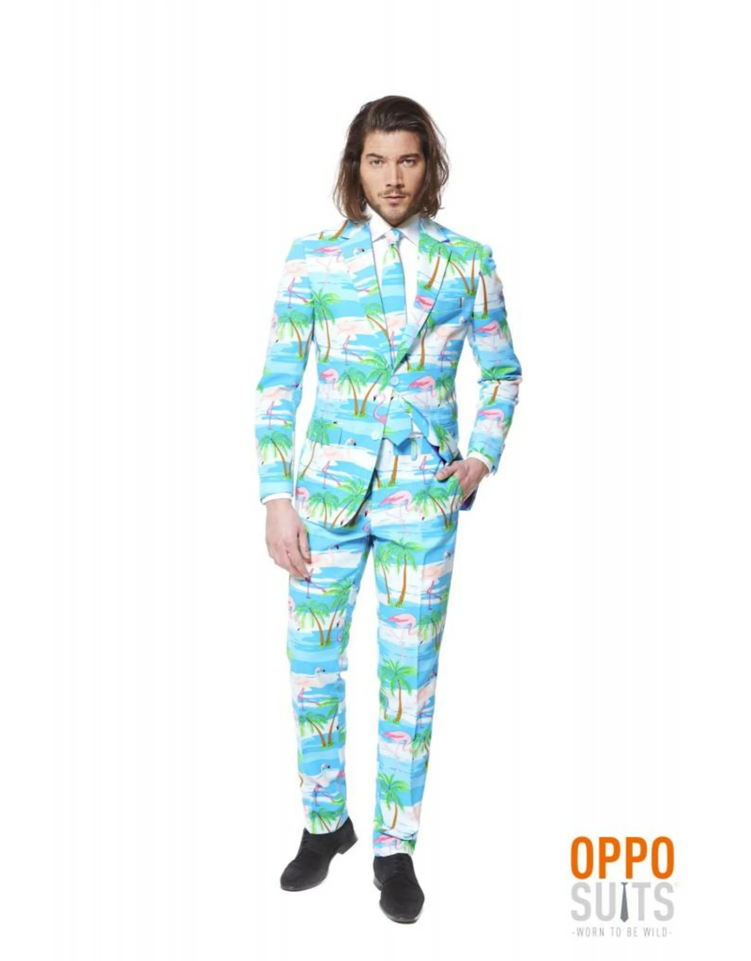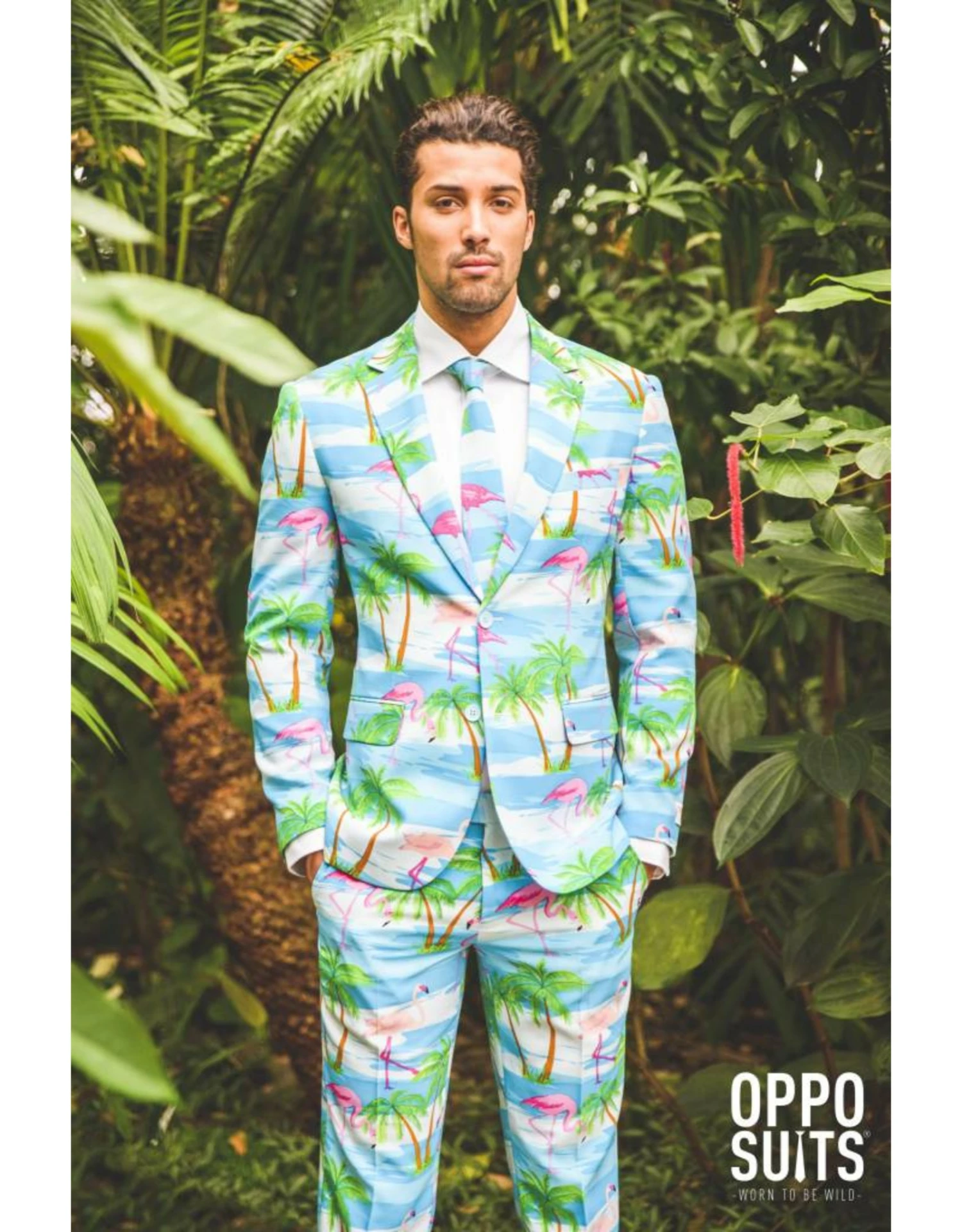 Gedraag je als een paradijsvogel en pronk met de veren die je hebt. Deze tropische verrassing van OppoSuits is gemaakt van palmbladeren, gewassen in margarita’s en bevat echte stukjes kokos*. In dit ultieme zomerpak ben je als een koel briesje op een hete dag (of andersom). * bij wijze van spreken