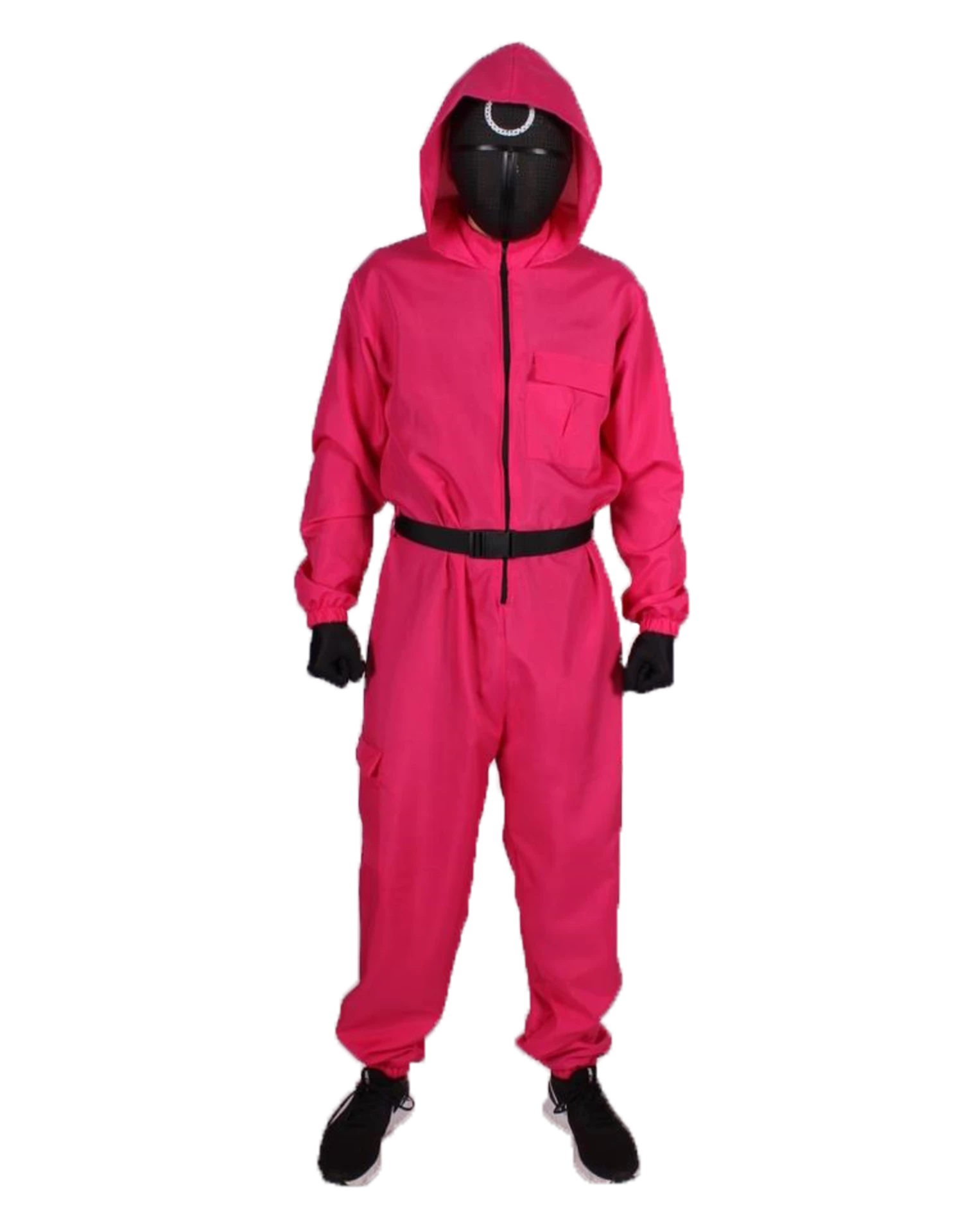 Het kostuum bestaat uit een Jumpsuit met handschoenen en riem.