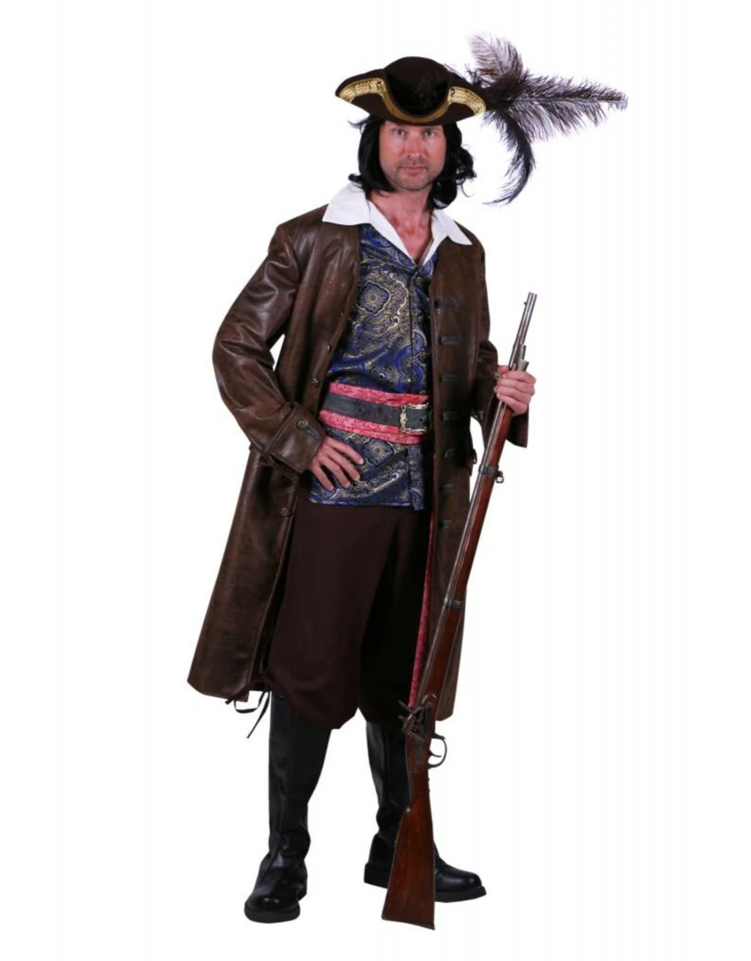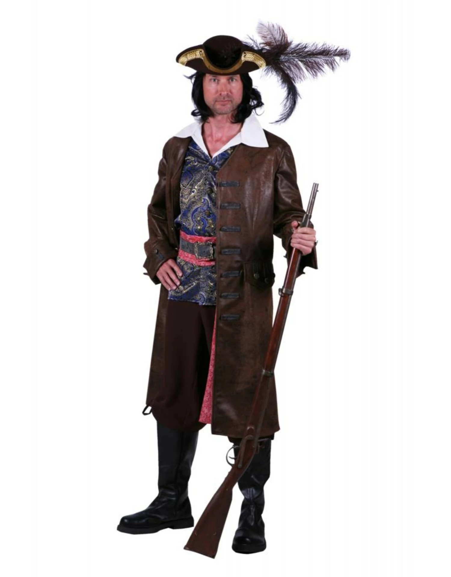 Dit kostuum bestaat uit een jas, broek, blouse en ceintuur.