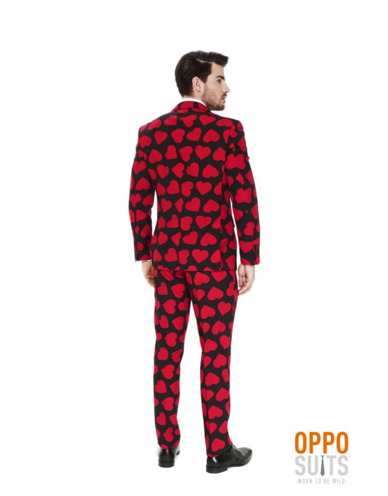 Wanneer je als een koning behandeld wilt worden zul je jezelf er ook naar moeten kleden. Gelukkig is dat nu makkelijker dan ooit met ons King of Hearts pak. Dit stijlvolle zwarte pak met rode hartjes geeft je de konkinklijke look die je verdient.
