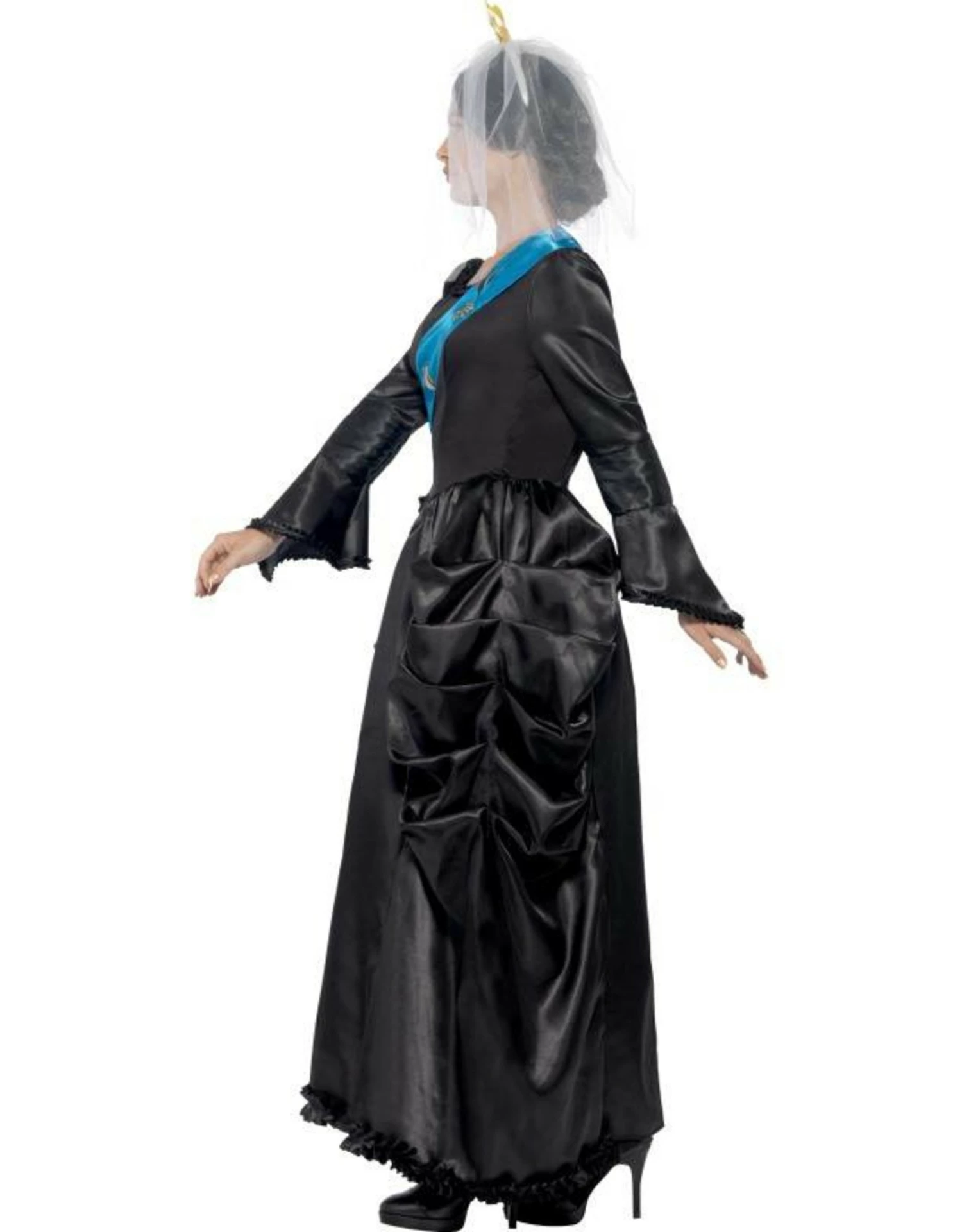 Dit kostuum bestaat uit een jurk met sjerp, kroontje