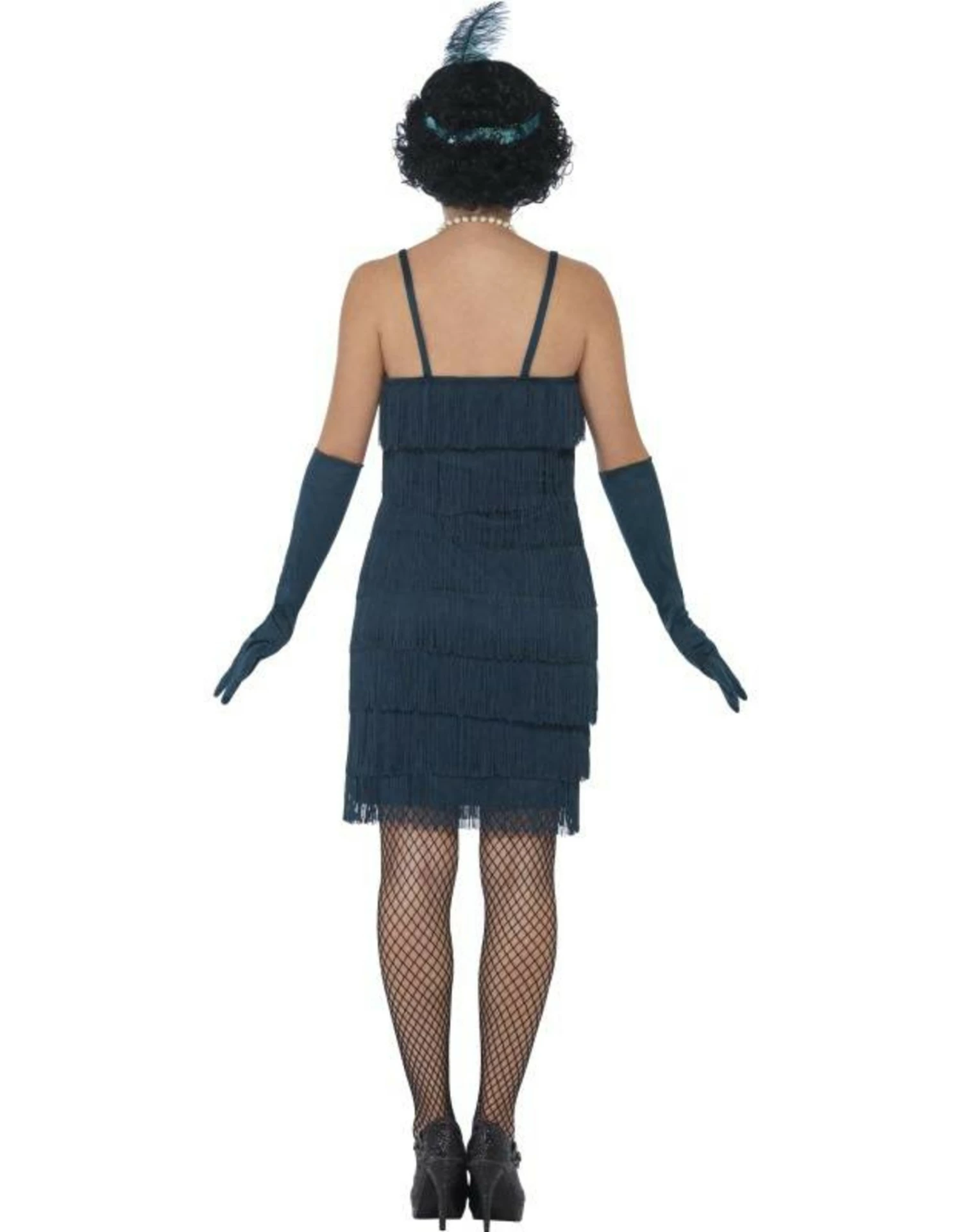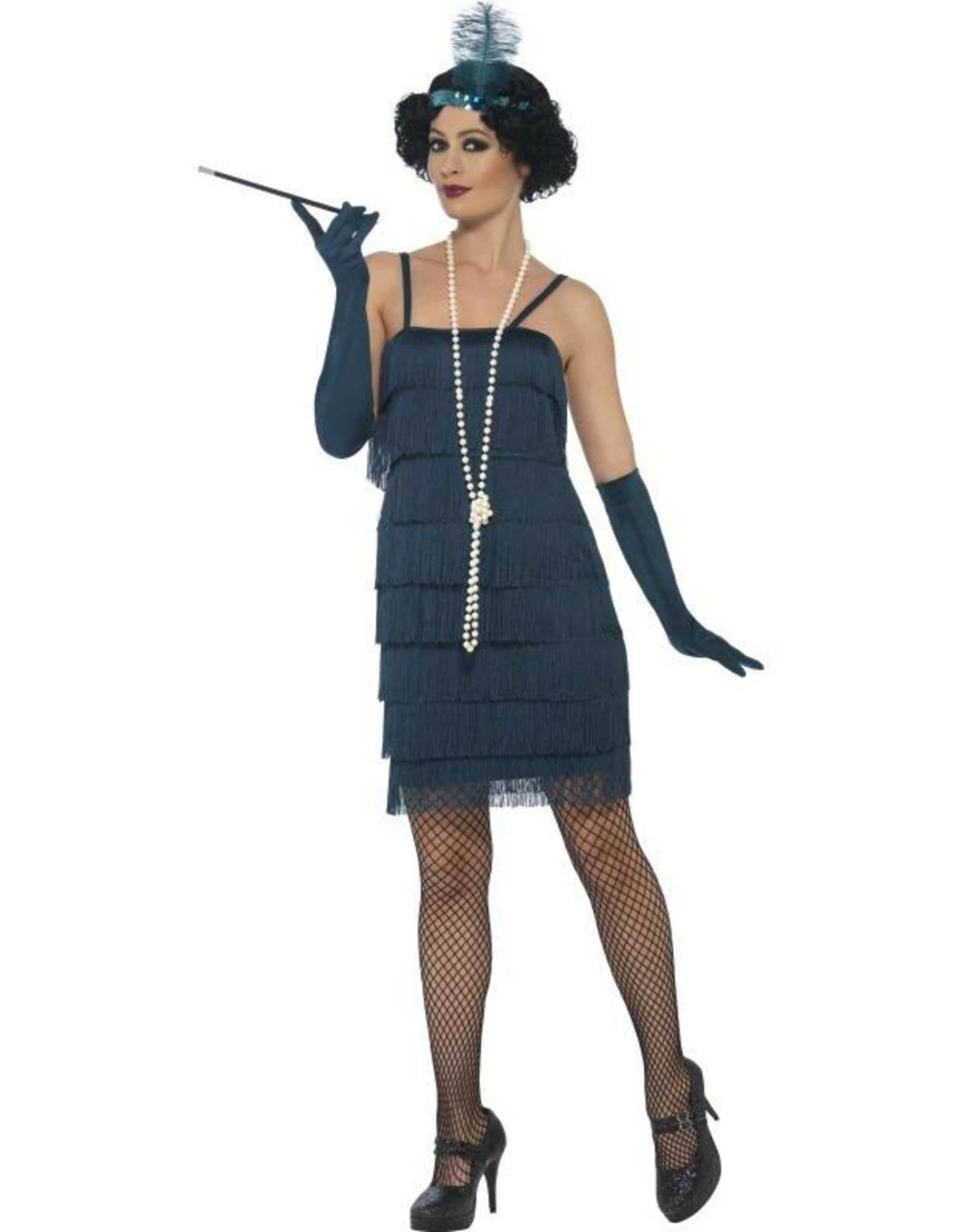 Dit kostuum bestaat uit een korte jurk met haarband en handschoenen