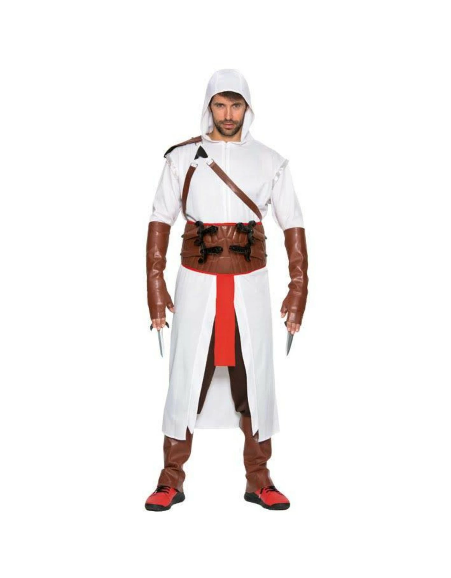Dit kostuum bestaat uit een jas met capuchon, brede riem, beenkappen en handschoenen.