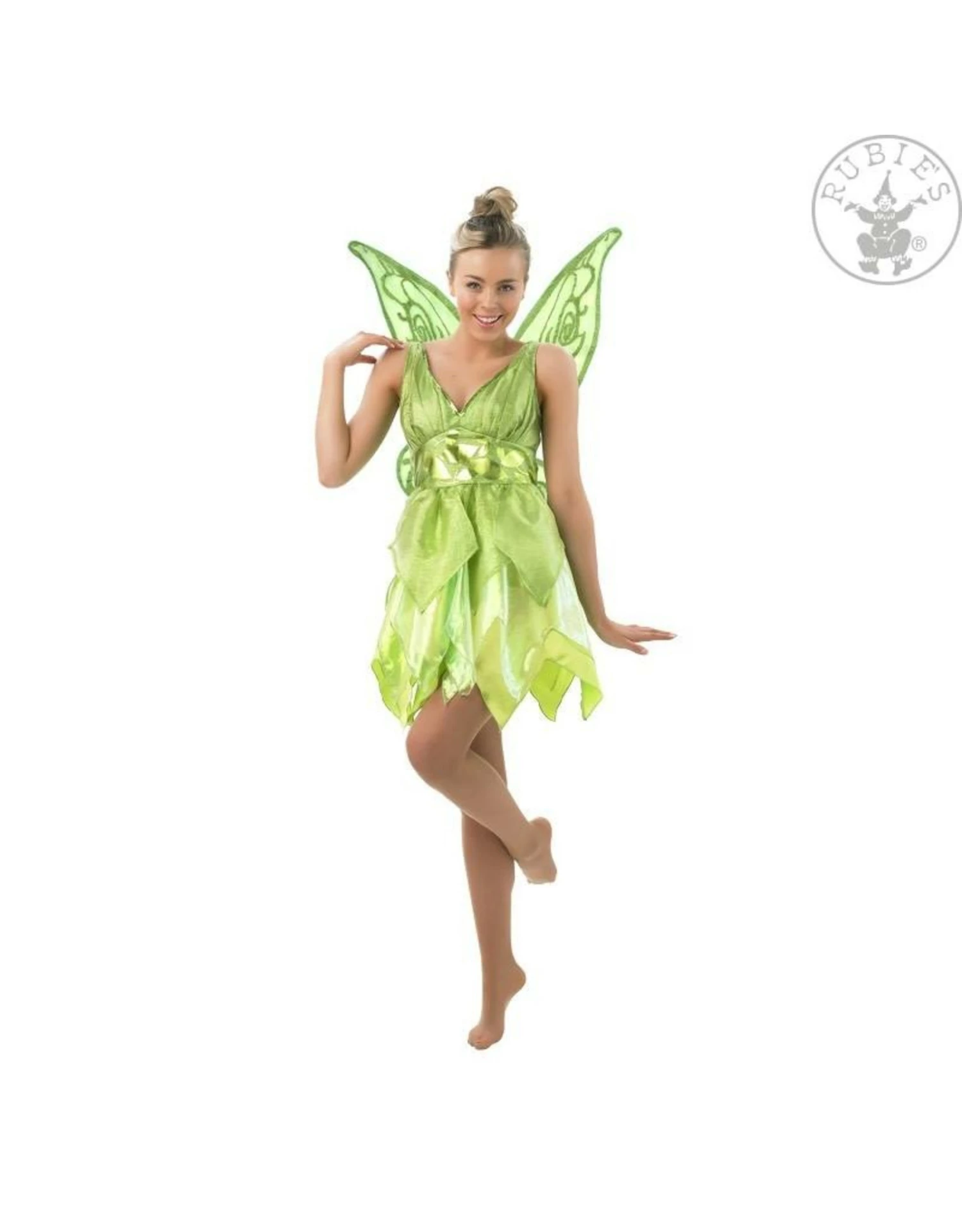 Luchtig zomerjurkje in verschillende tinten groen met glanzend bedrukte front en multi-gelaagde rok. Inclusief grote Tinker Bell vleugels.
