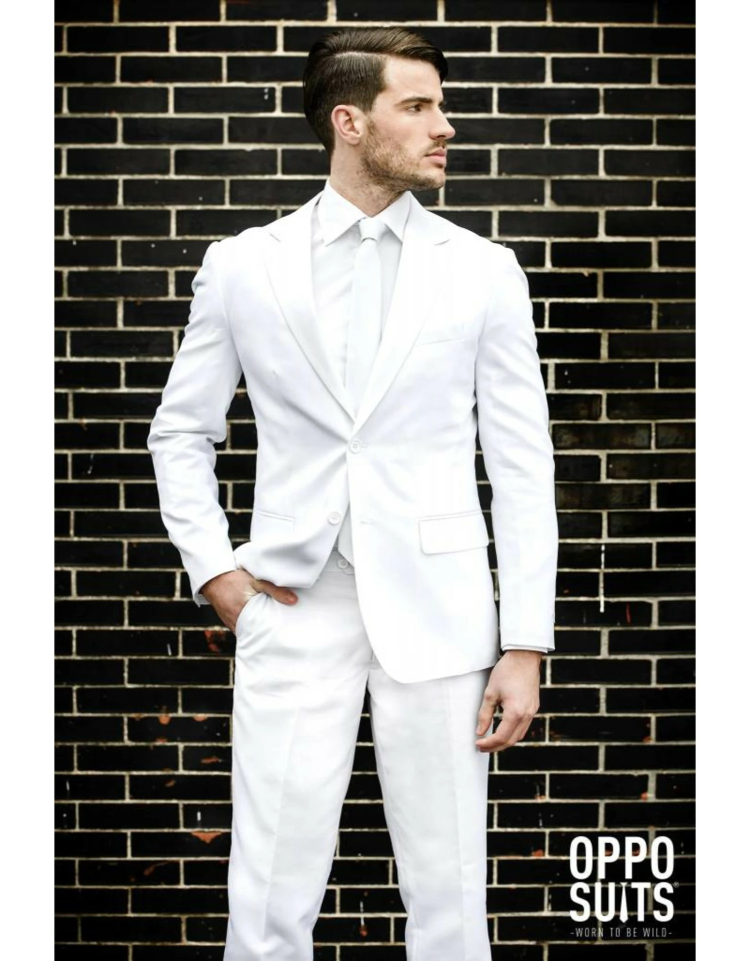De avond is jouw canvas, met deze smetteloze creatie van OppoSuits. Het ultieme pak om de brave borsten van de echte feestbeesten te onderscheiden. Hou jij het netjes of laat je je helemaal gaan? White Knight is bewijsstuk nummer één wanneer je de volgende dag wakker wordt.